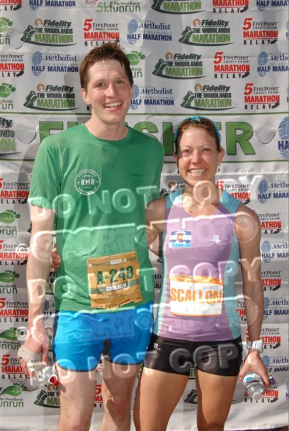 Woodlands_finish_GregCassie Cassie had no trouble. I laid down in the dirt for awhile after the race, wanting to die.